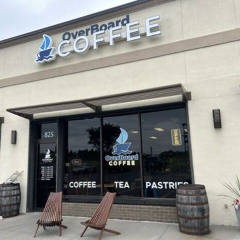 OverBoard Coffee is a charming, lake themed local coffee shop in Lee's Summit, MO, known for great coffee (Maps Coffee), homemade pastries (especially cinnamon rolls), breakfast/lunch burritos, flowers, and a cozy, community vibe, effectively acting like a mini-mall for local businesses with its partnerships. It offers coffee, baked goods, and local artisan products, creating a unique "good vibes" spot with a nautical touch, making it a hub for local support.
